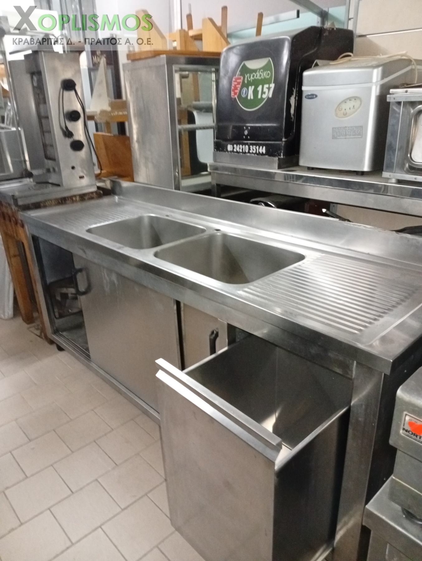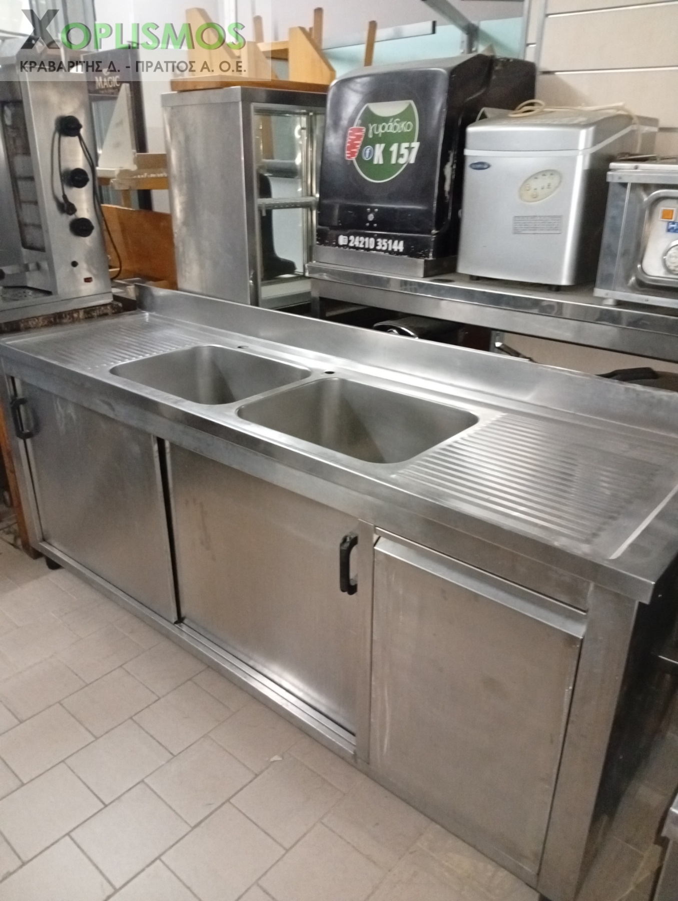 Στην επαγγελματική κουζίνα, η λάντζα είναι το σημείο που “κολλάει” η δουλειά αν δεν είναι σωστή. Η συγκεκριμένη κατασκευή είναι σχεδιασμένη για να επιταχύνει τη διαδικασία της πλύσης. Συνδυάζει τρία βασικά στοιχεία: Καθαρισμός (Αμπάρι) -> Πλύση (2 Γούρνες) -> Αποθήκευση (Ερμάριο).
